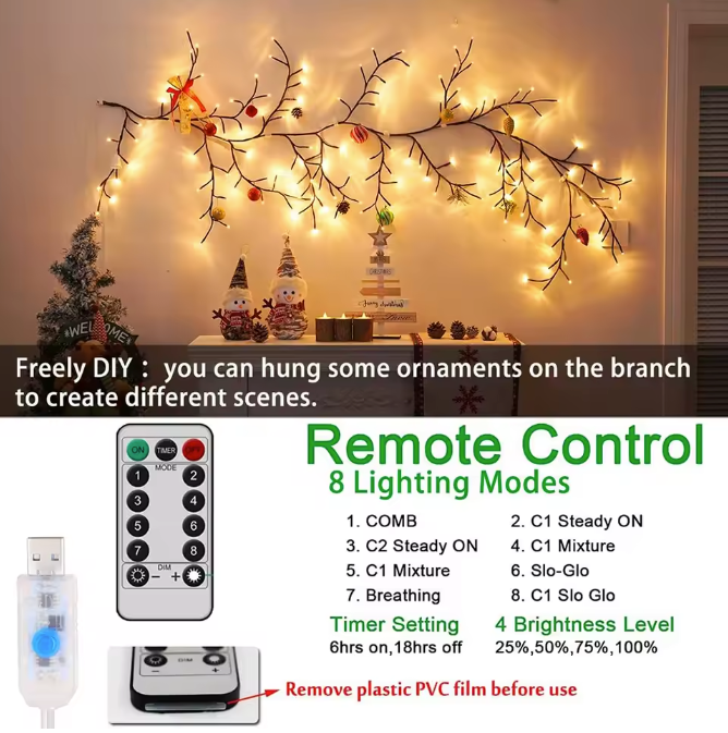 Entdecken Sie WillowGlow, Ihren Schlüssel zu einer mühelosen stimmungsvollen Umgebung. Mit seinen warmen, goldenen Lichtern und natürlichen Weidenzweigen verwandelt dieser Lichtschlauch jeden Raum in ein magisches Refugium. Ideal für besondere Anlässe oder als dauerhafte Ergänzung zu Ihrer Hausdekoration.