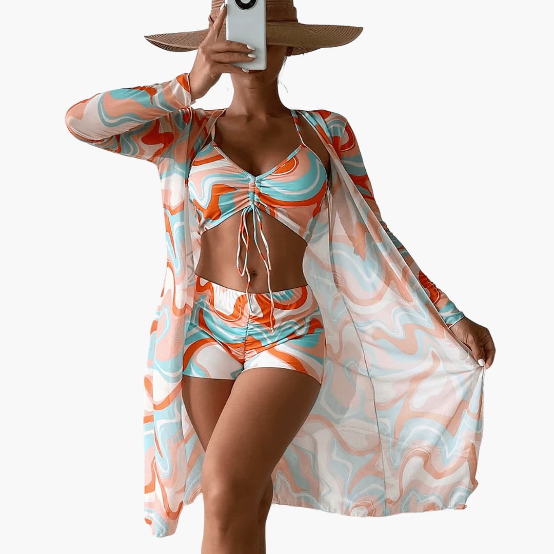 3-teiliges Damen-Sommer-Strand-Bademoden-Set mit langen Ärmeln