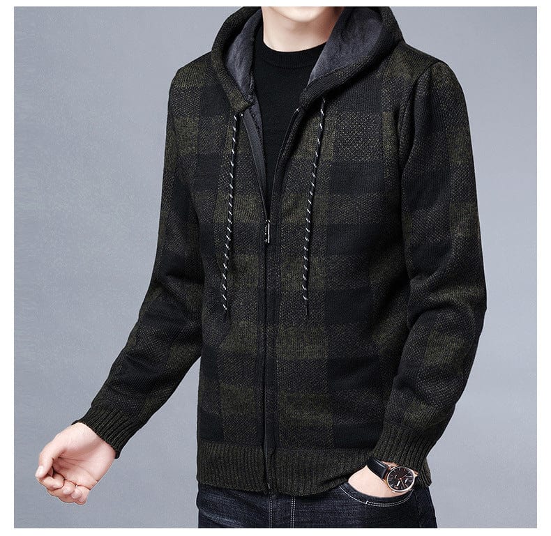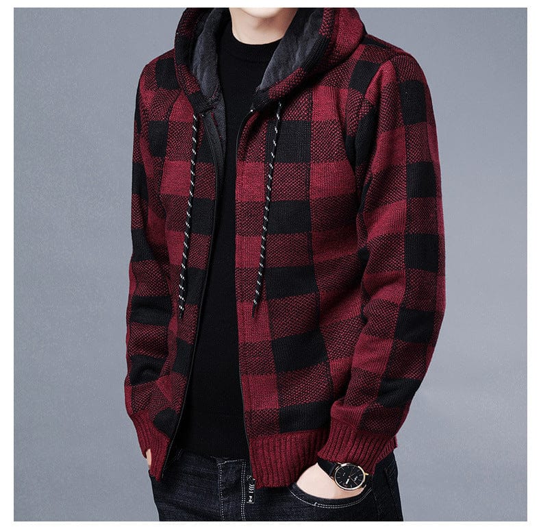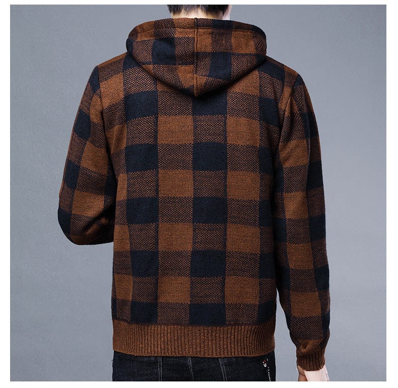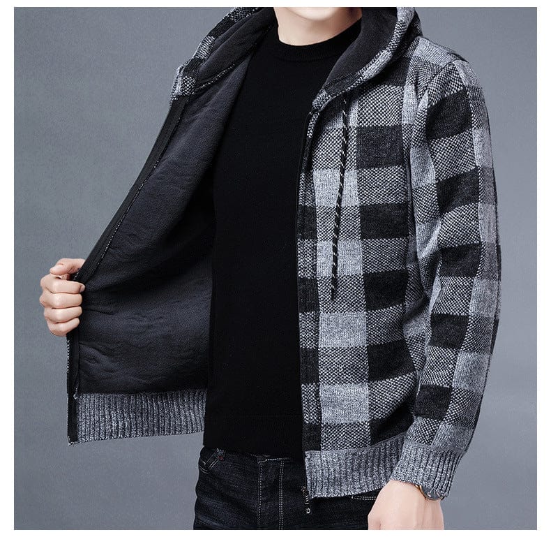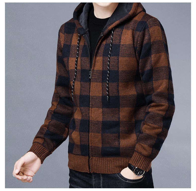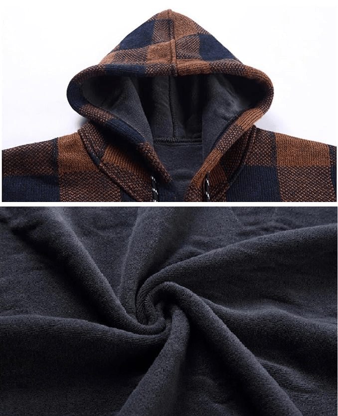 Entdecken Sie unseren stilvollen ALDEN - Kapuzenpullover mit Reißverschluss und kontrastierendem Karomuster. Dieser modische Strickjacke aus karierter Stoff bietet Wärme und Komfort und ist damit perfekt für den täglichen Gebrauch. Mit seinem modernen Design und der vielseitigen Passform ist dieser Mantel eine unverzichtbare Ergänzung für jede Wintergarderobe. Genießen Sie die Kombination aus Stil und Funktionalität, die diesen Mantel zu einem Must-Have für Ihre Herbst- und Winterbekleidung macht.