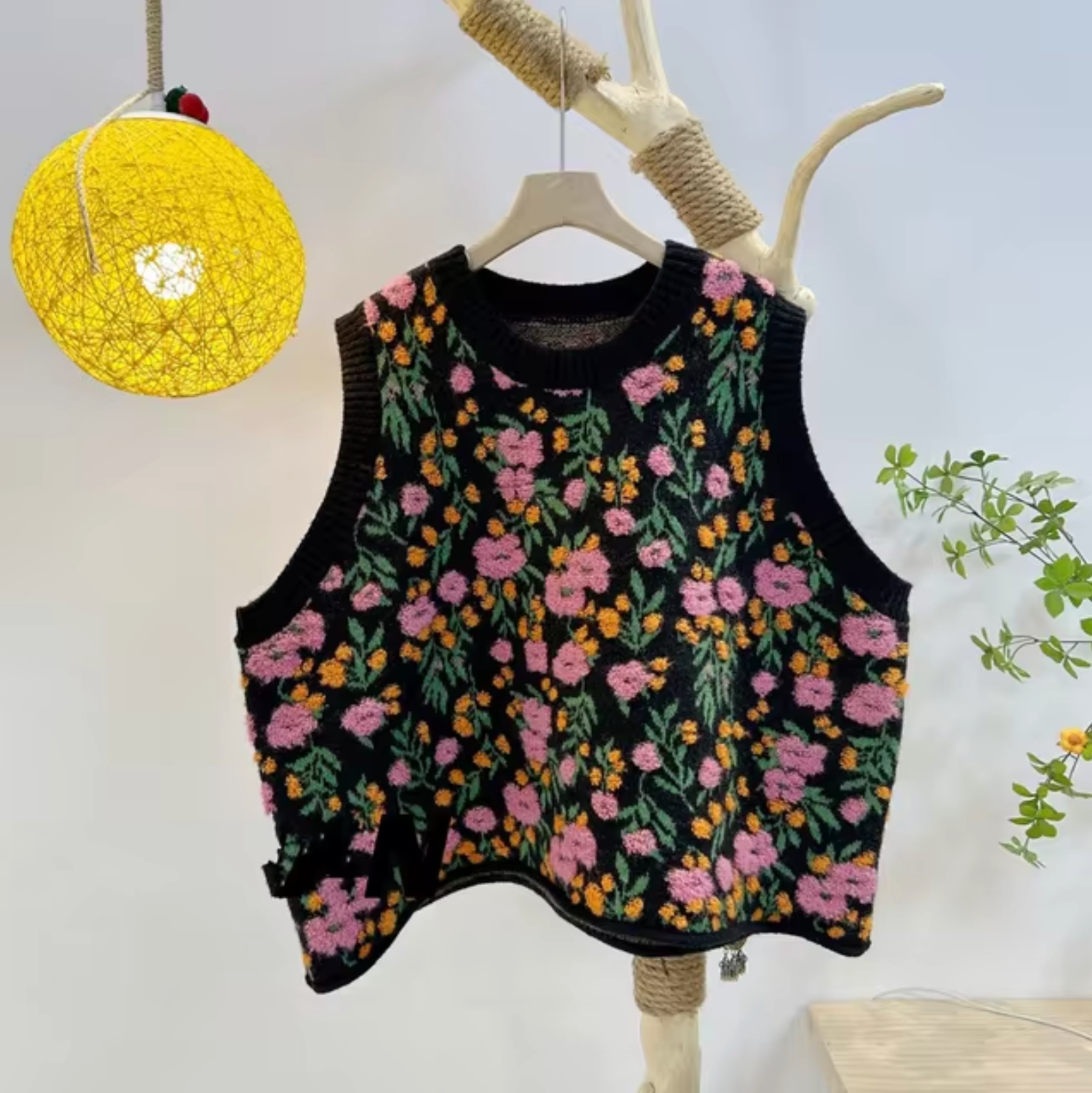 Diese ärmellose Strickweste für Frauen ist aus einer weichen und bequemen Mischung aus hochwertigem Garn gefertigt und mit einer aufwendigen Blumenstickerei versehen, die für einen charmanten Touch sorgt.
