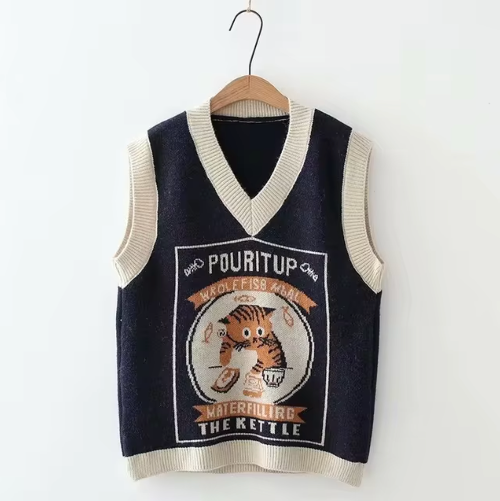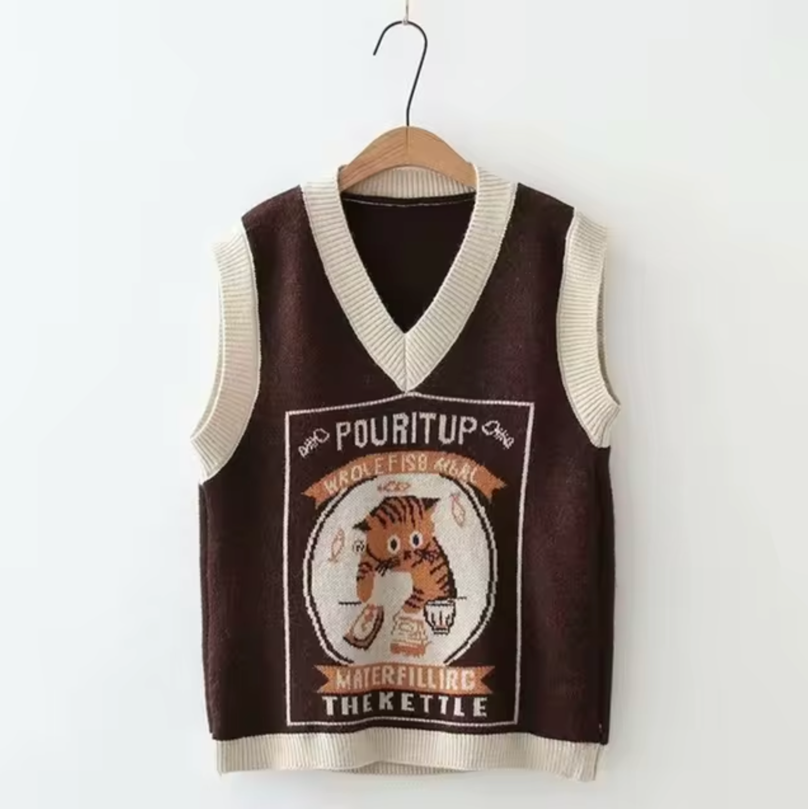Almira – Gestrickte ärmellose Weste mit Rundhalsausschnitt