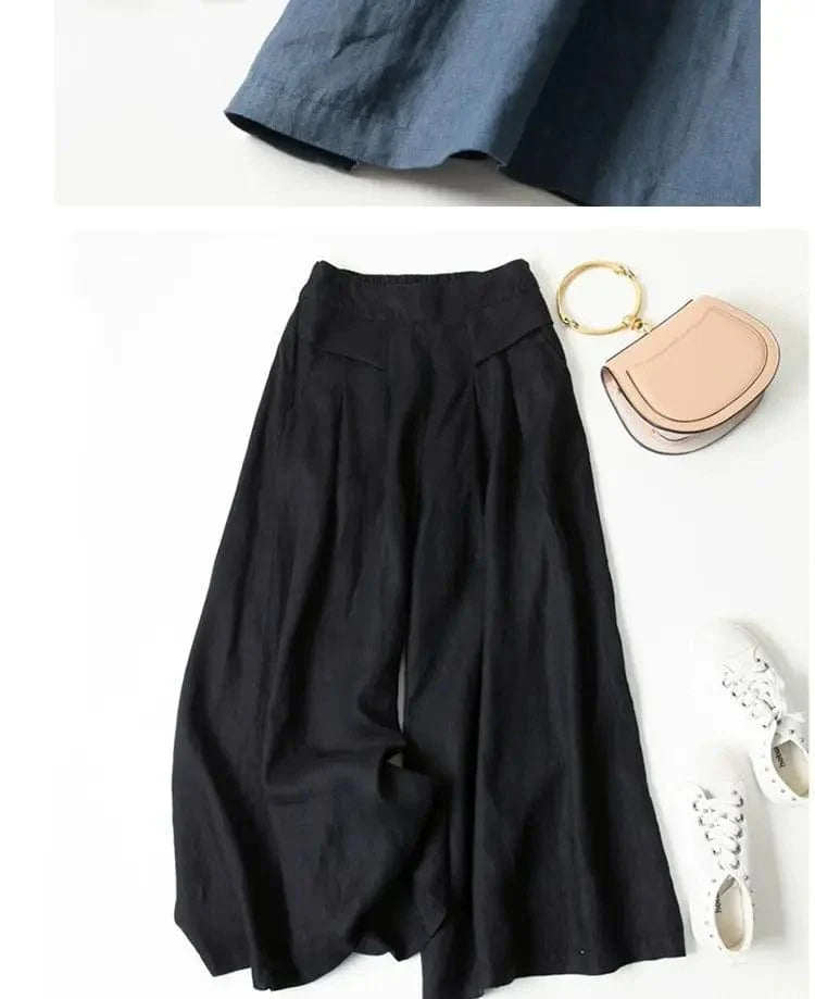 Fühlen Sie sich wohl in dieser ANNICA - Hose mit weitem Bein aus Baumwolle und Leinen, eine perfekte Mischung aus Komfort und Stil, geeignet für jede Jahreszeit, jeden Anlass und jeden Modestil. Sie hat eine fließende und entspannte Passform, die jede Körperform schmeichelt. Diese Hose ist perfekt, um sie mit Ihrem Lieblings-T-Shirt zu tragen und ist ein perfektes Basic für Ihre Garderobe!