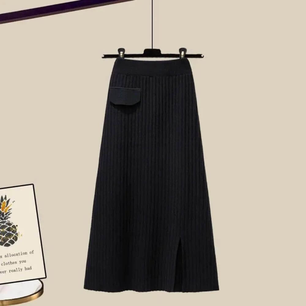 ✓ Einfach kombinierbar für jeden Anlass: Beinhaltet einen schicken Pullover, einen dehnbaren Rock und eine gemütliche Schal-Weste – zusammen oder einzeln tragbar.