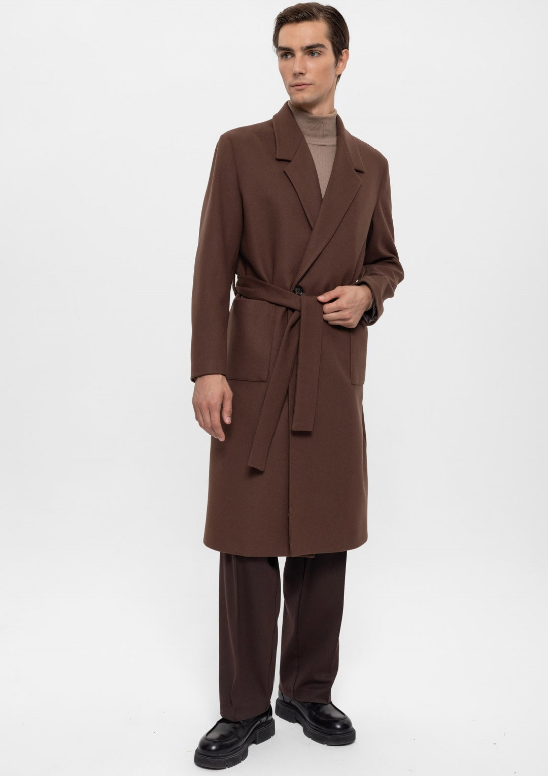 ANTIOCH | Oversized Mantel mit Gürtel und großen Taschen – Braun