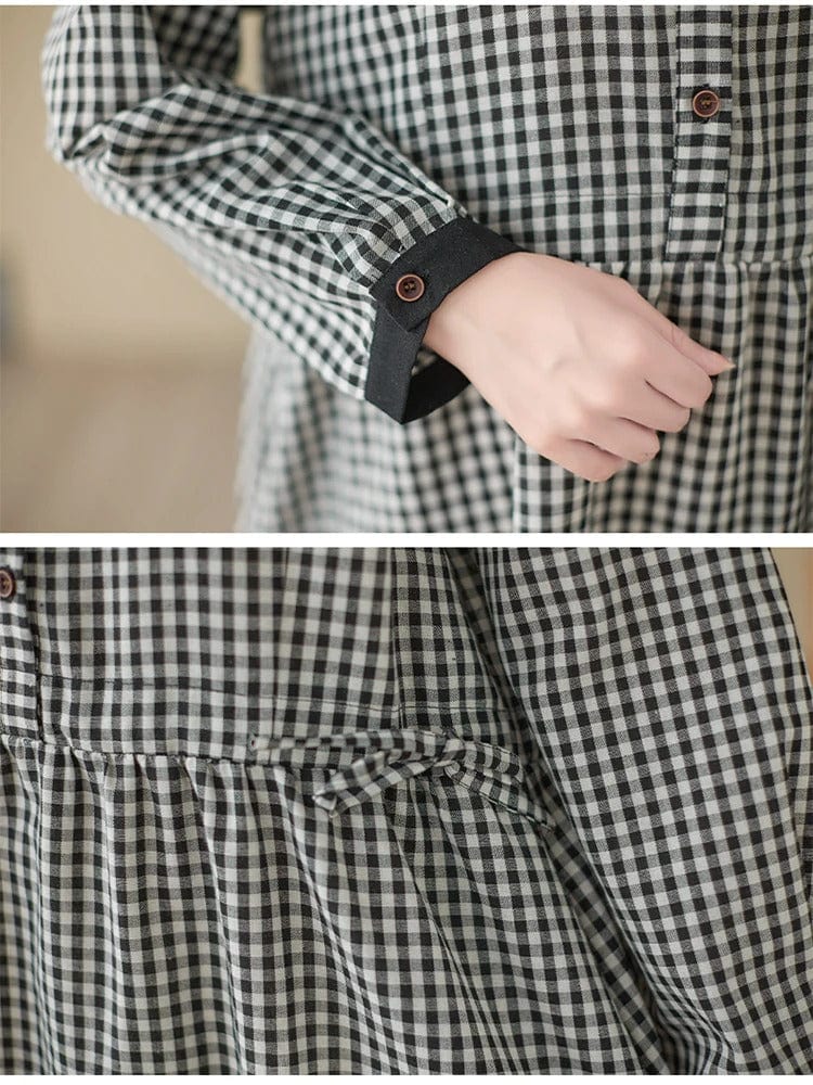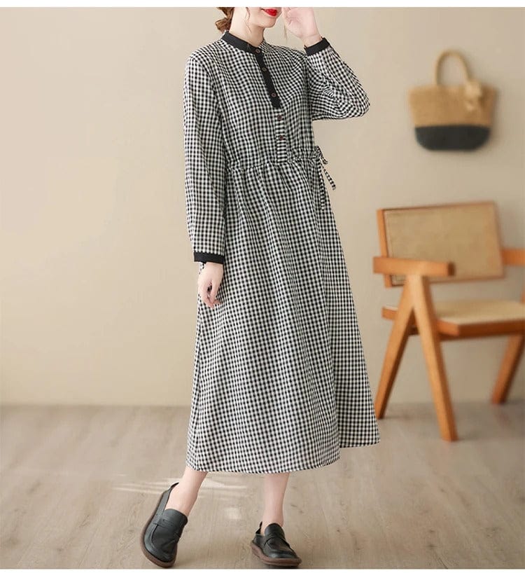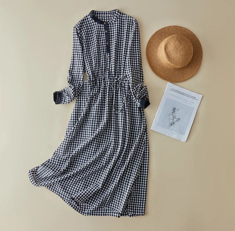 Vorstellen möchten wir Ihnen das APRIL - Langarm-Karo-Langkleid, ein niedliches Kleidungsstück mit einem Hemdkragen, der den Hals stilvoll erscheinen lässt. Ein entspanntes und komfortables Kleid in mittlerer Länge bis zum Unterschenkel mit einem beeindruckenden einzigartigen Karomuster. Mit diesem einzelnen Stück erzielen Sie einen femininen Abschluss. Dies ist eine perfekte Ergänzung zu Ihrer Garderobe, um Ihnen einen schicken und eleganten Look zu verleihen.