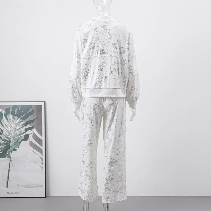 Erweitern Sie Ihre Freizeitgarderobe mit dem ARIANNA - Lässiger Zweiteiliger Paillettenanzug. Dieses stilvolle Set vereint nahtlos Komfort und Mode und ist die ideale Wahl für einen entspannten, aber dennoch schickem Look. Es umfasst ein Sweatshirt und passende Hosen, die Ihnen ermöglichen, mühelos einen koordinierten Look zu erzielen.