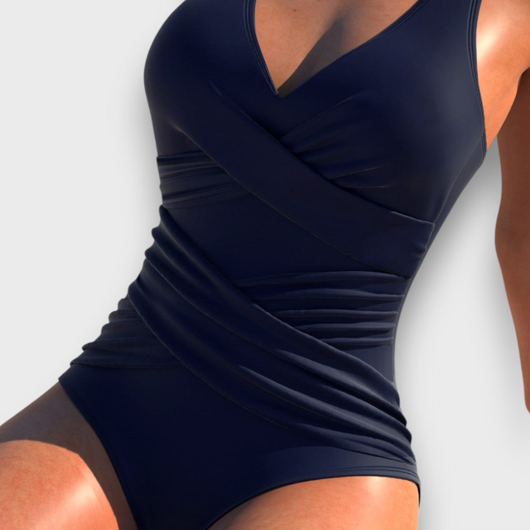 Astrid – Farbintensiver Badeanzug mit überkreuztem Vorderteil