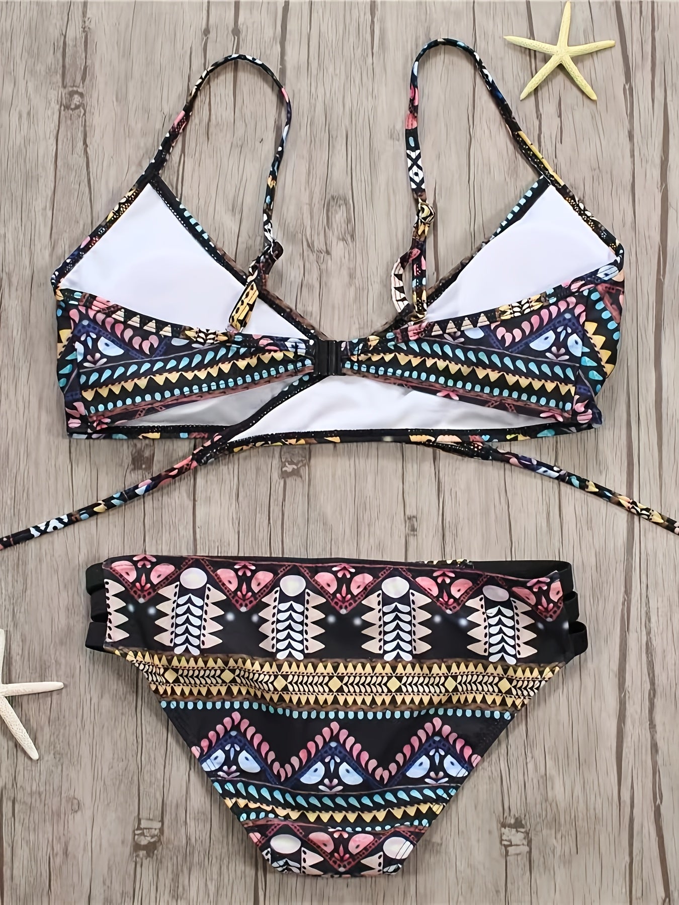 Boho-Bikini-Set – Hochgeschnittener Zweiteiler mit Tribal-Muster, Schulterfrei