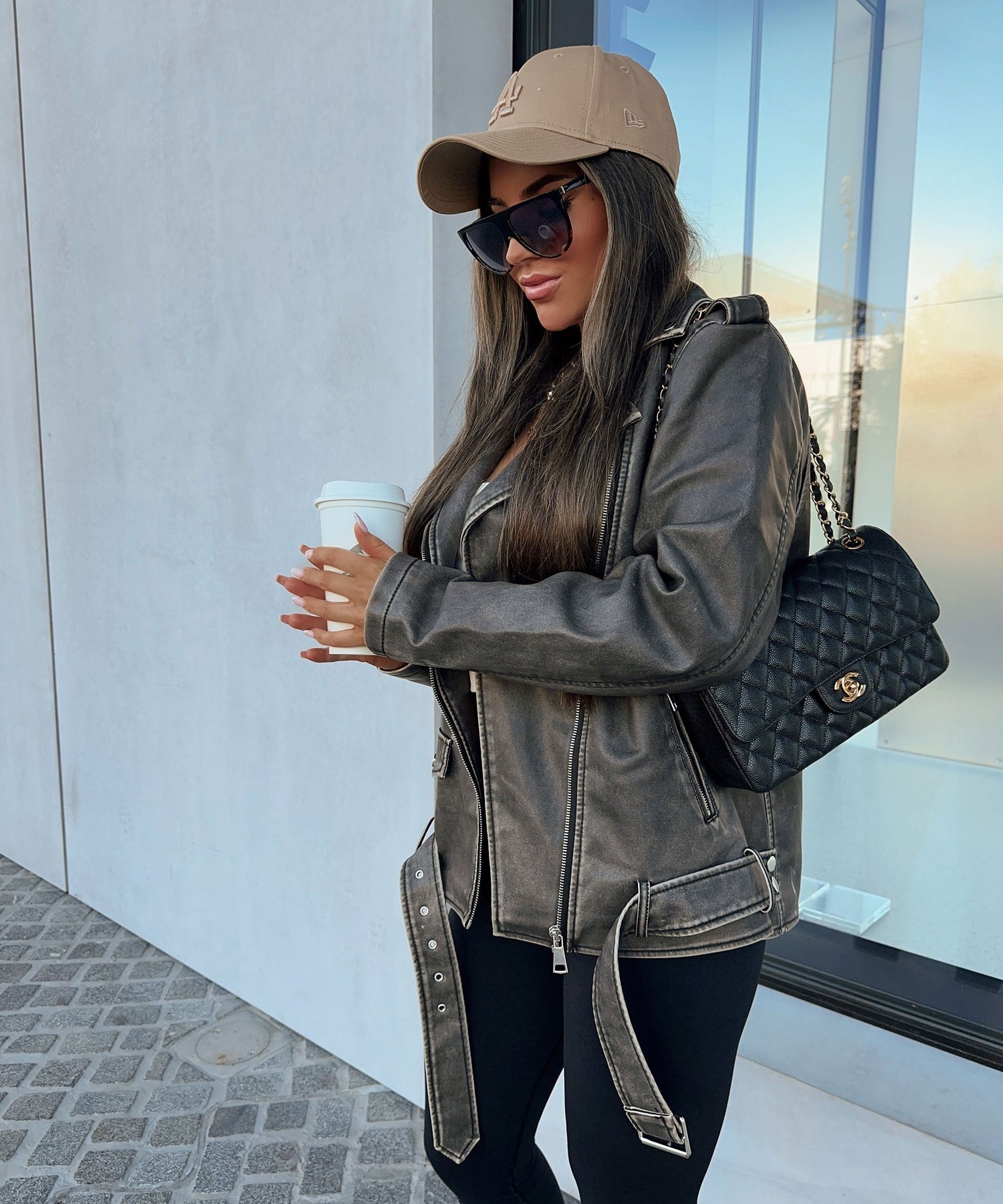 Zita - vegane lederjacke in ubergröbe dunkelgrau